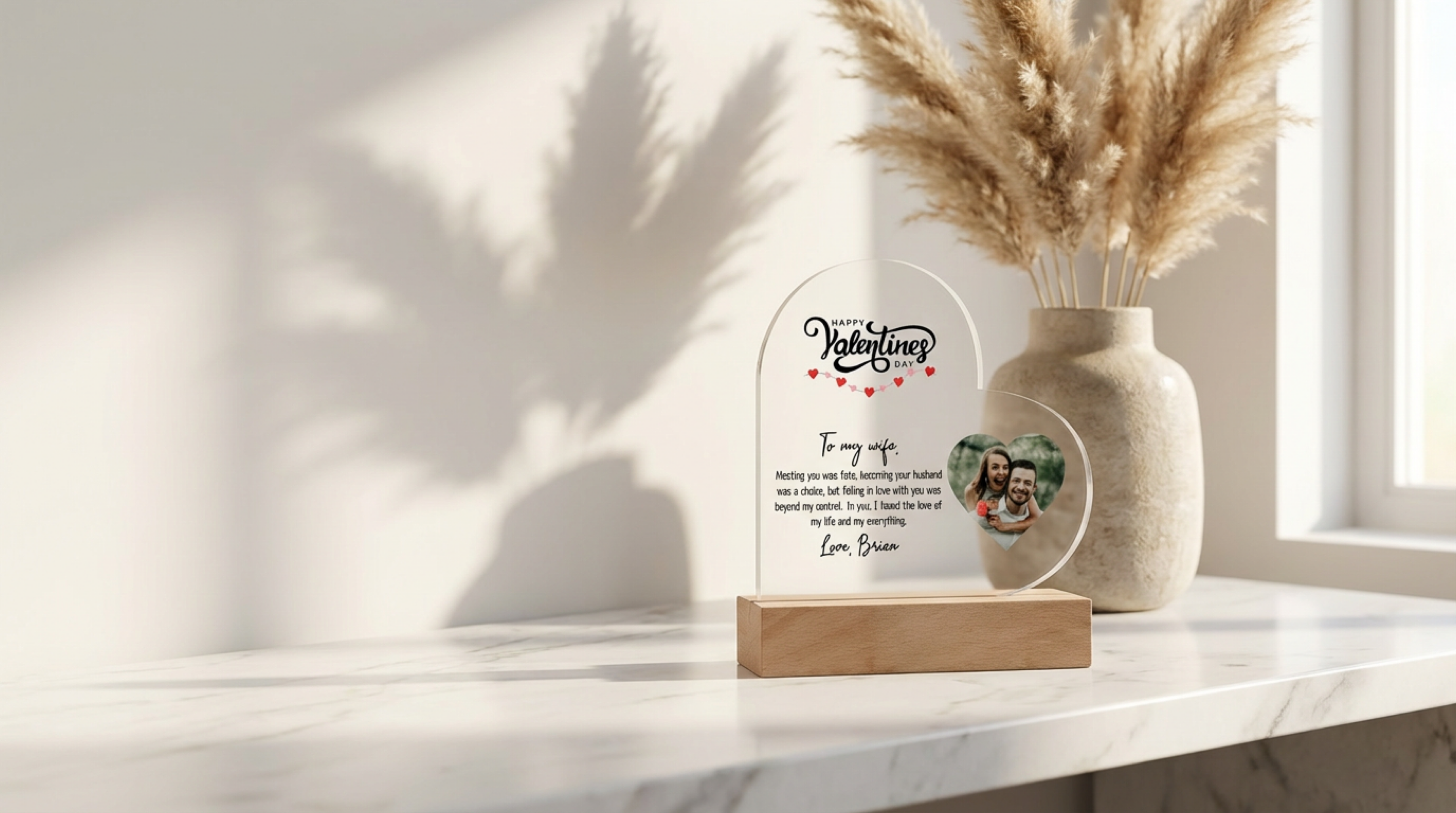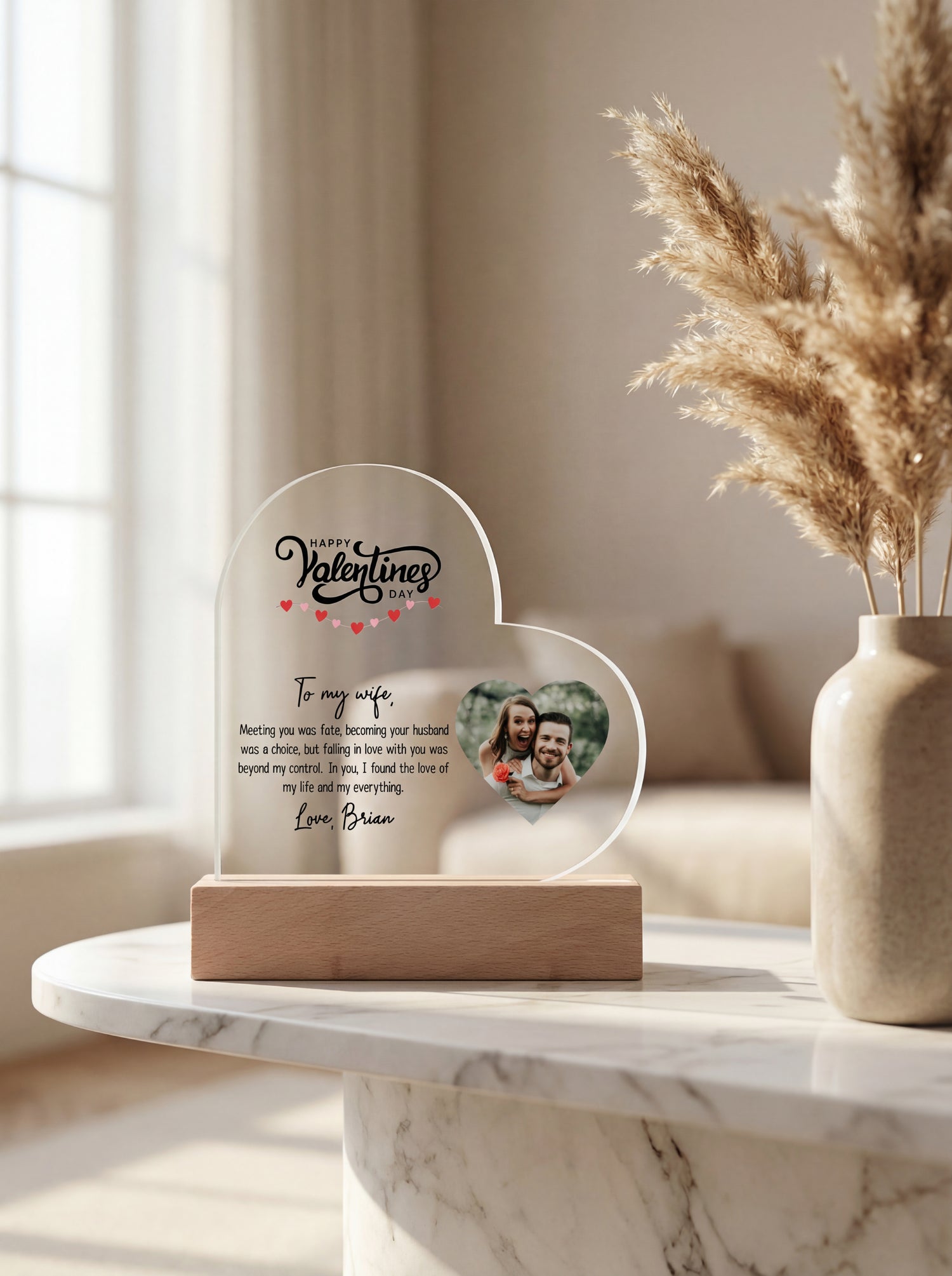Personalized Valentine's Day LED Heart Plaque - Custom Photo Love Letter Gift