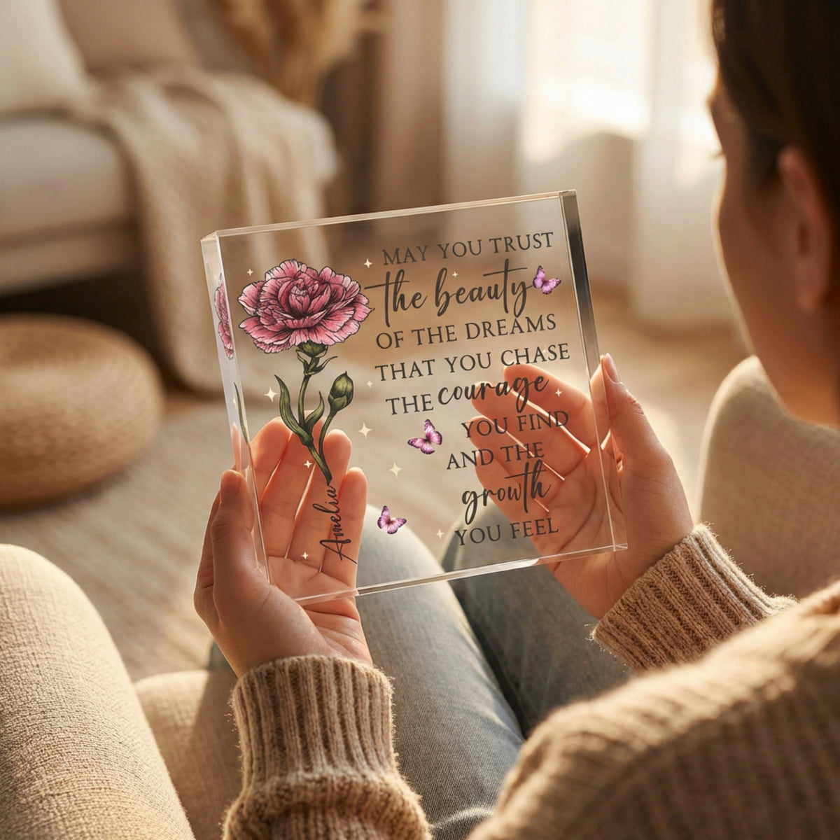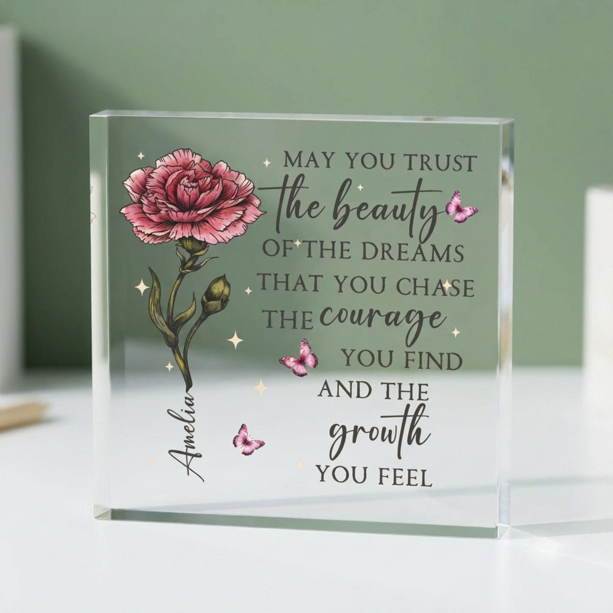The elegant crystal-clear acrylic design creates a modern keepsake perfect for desks, shelves, or home decor. It’s a thoughtful gift that encourages strength, growth, and belief in dreams.