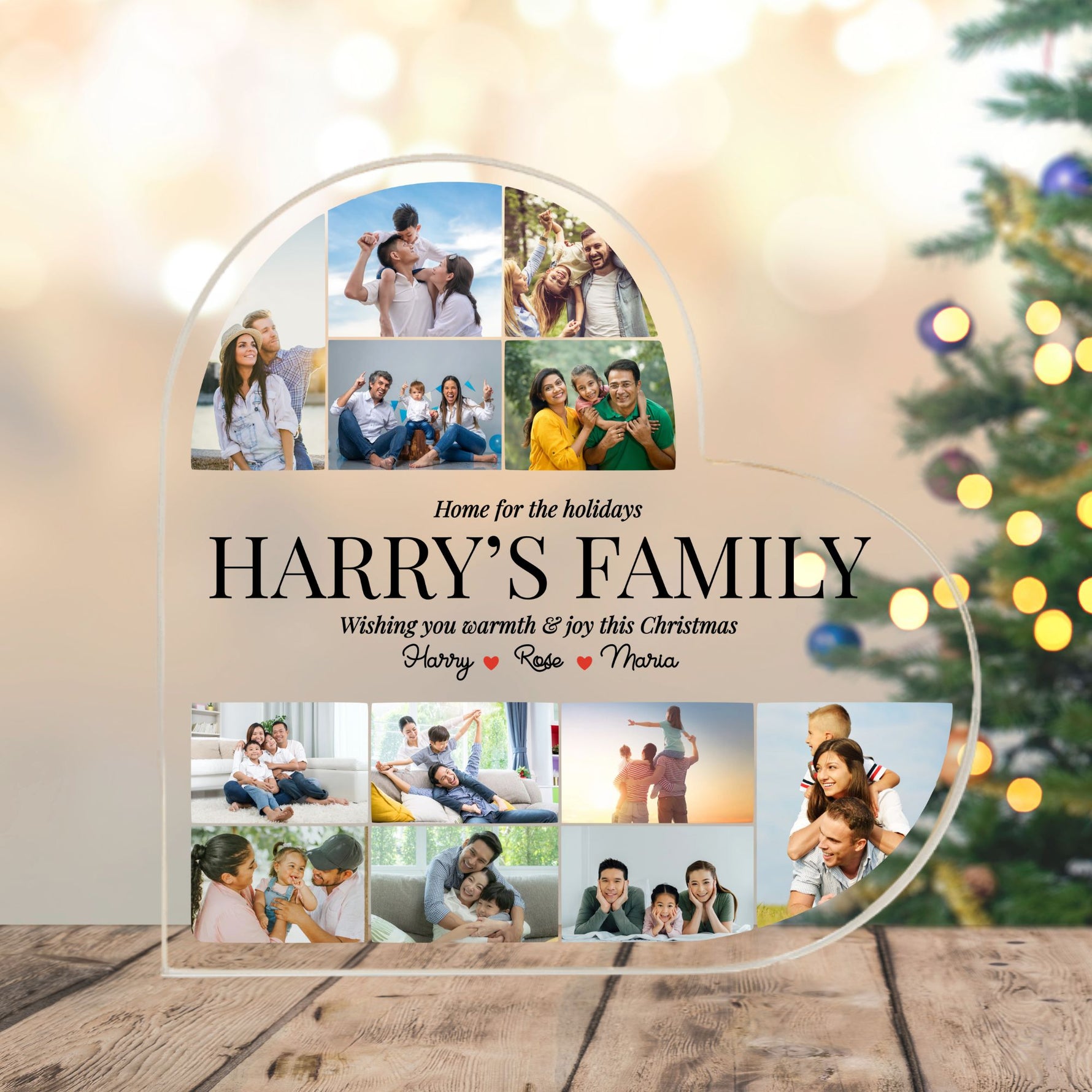 Custom Photo Christmas Family Heart Acrylic Plaque Gift