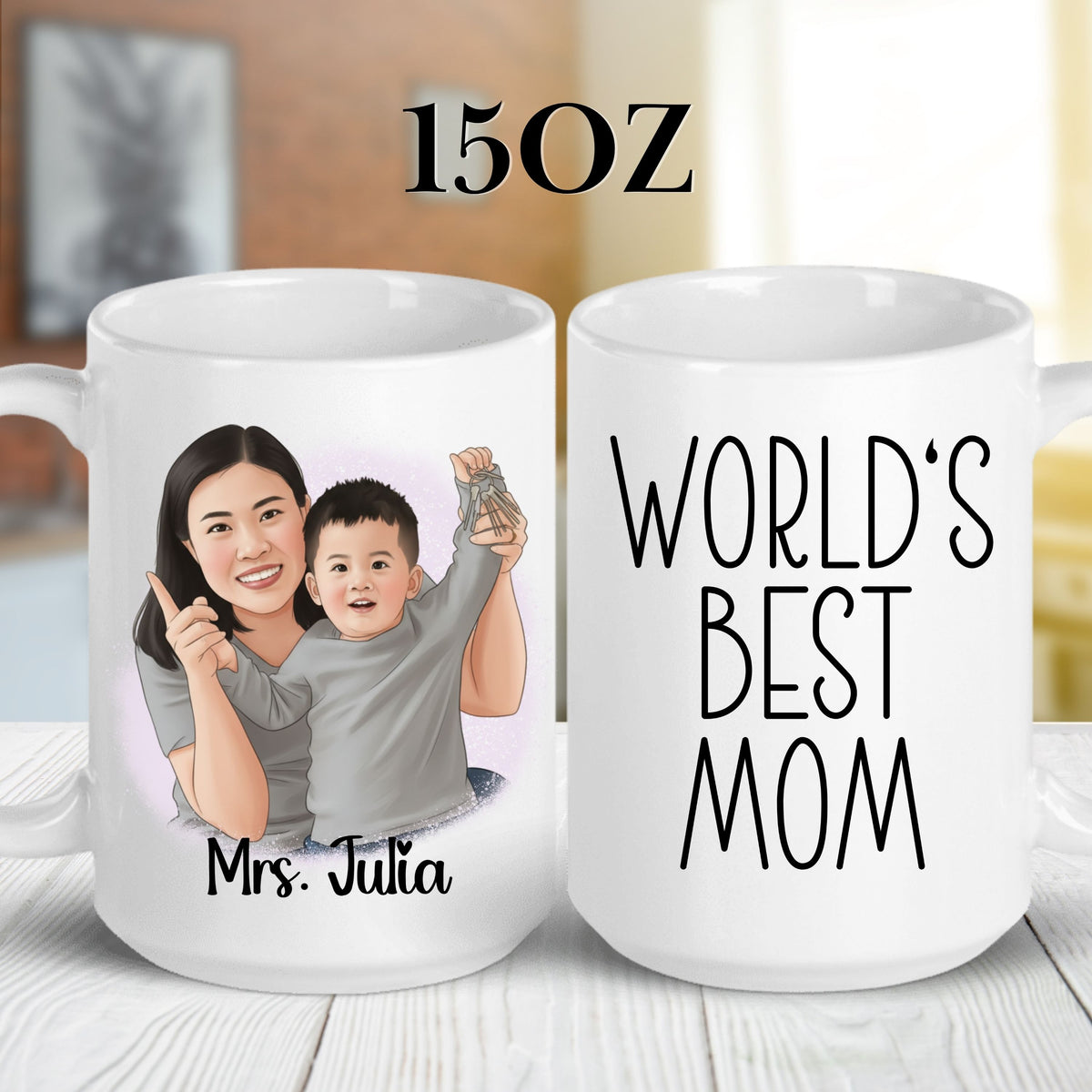 Custom 11oz and 15oz Cartoon Photo Worlds Best Mom Mug