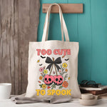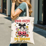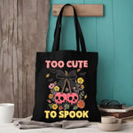 This too cute to spook tote bag with a Halloween aesthetic design is perfect for the autumn spooky season. A must-have for Halloween enthusiasts looking to add a touch of spookiness to their fall wardrobe. Ideal for adults who love Halloween and want to showcase their love for the holiday.