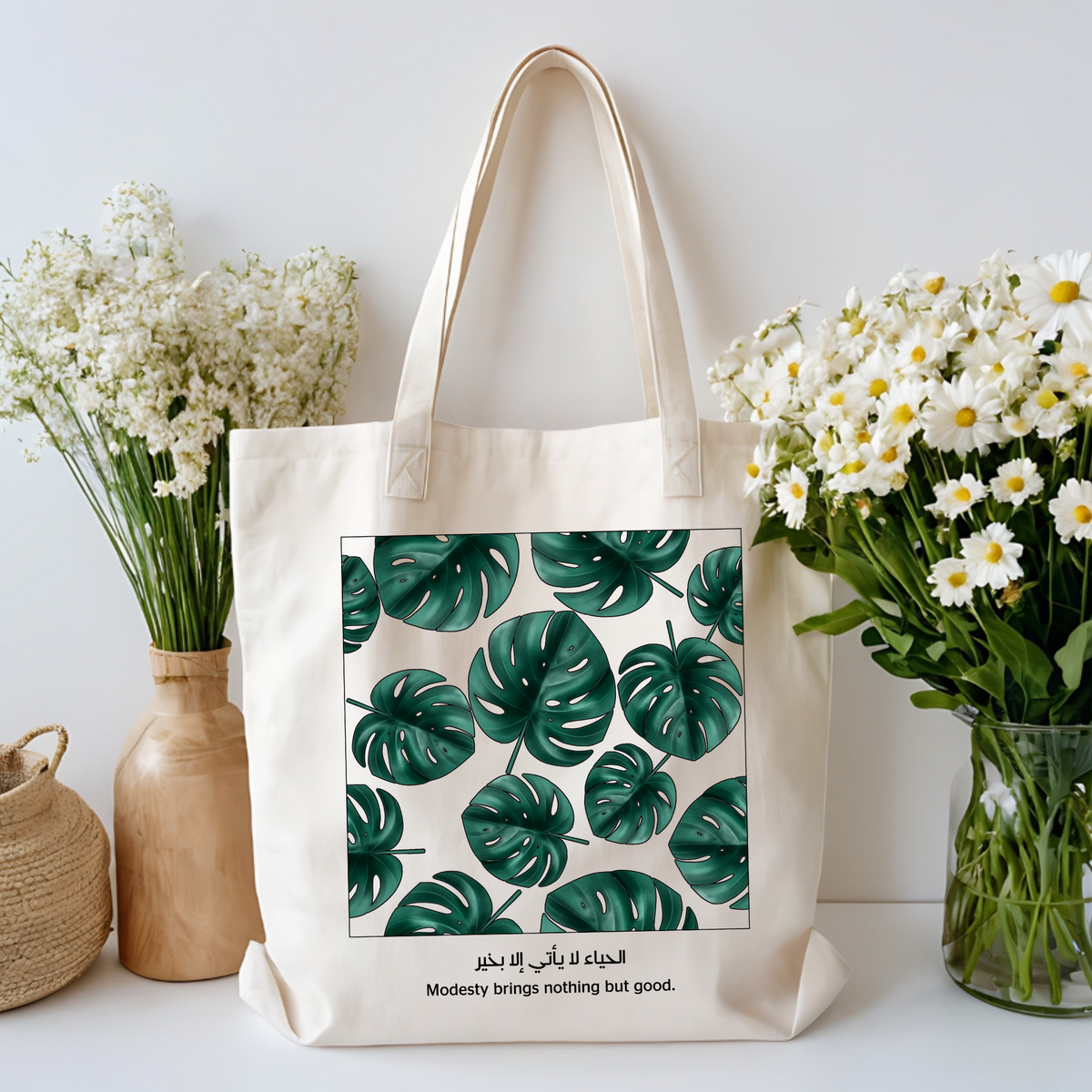 This Islamic wisdom tote bag exudes modesty and positivity, perfect for carrying your essentials with style and grace. Ideal for those seeking daily inspiration and looking to add a touch of spirituality to their lives. Relevant for Islamic holidays and occasions.