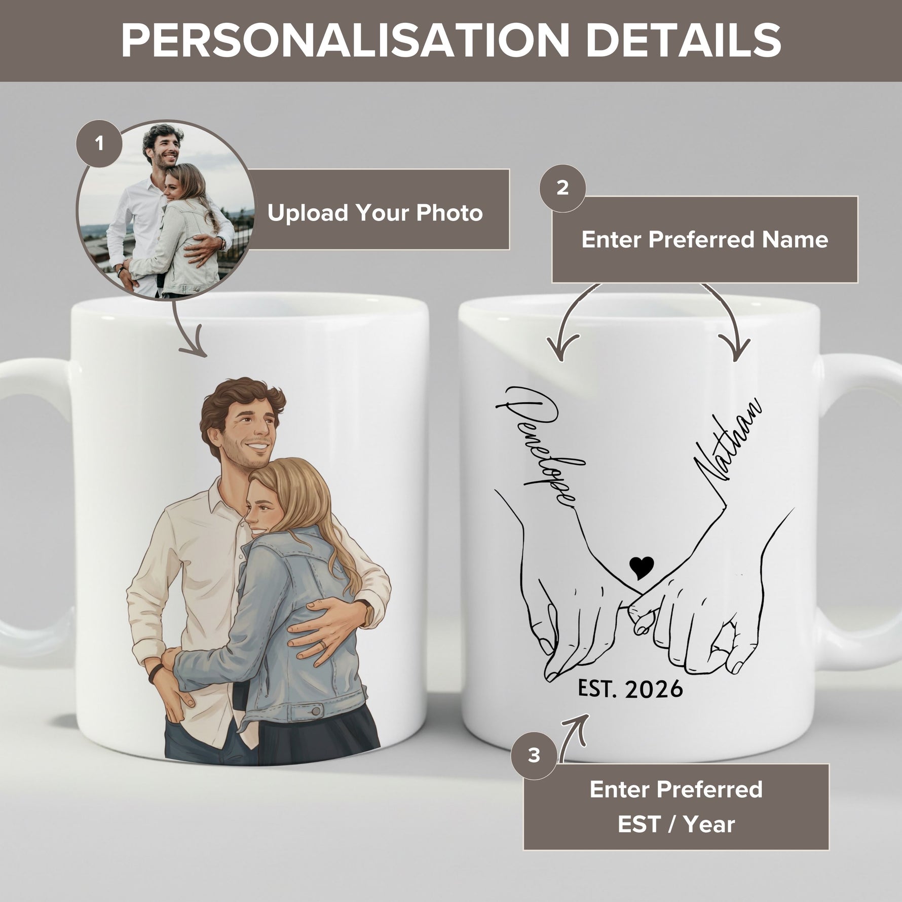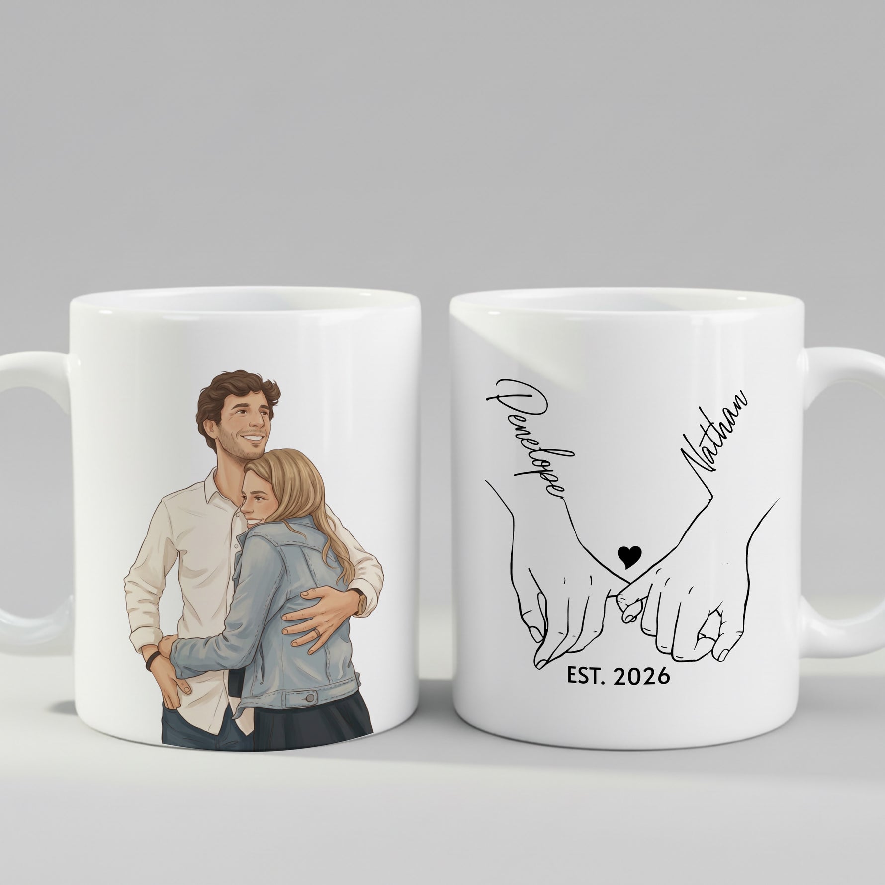 Personalized Couple Cartoon Mug - Custom Names & Date Gift