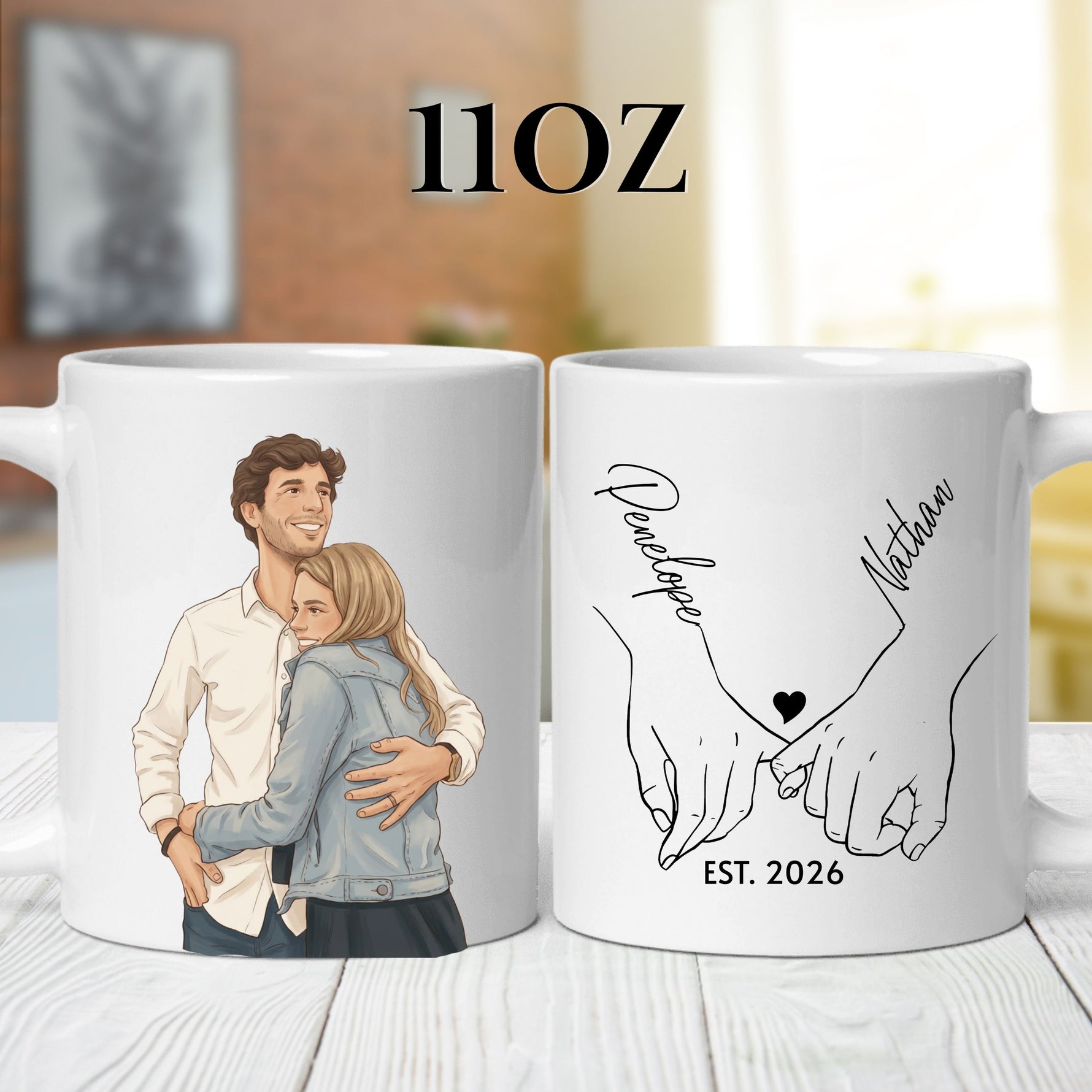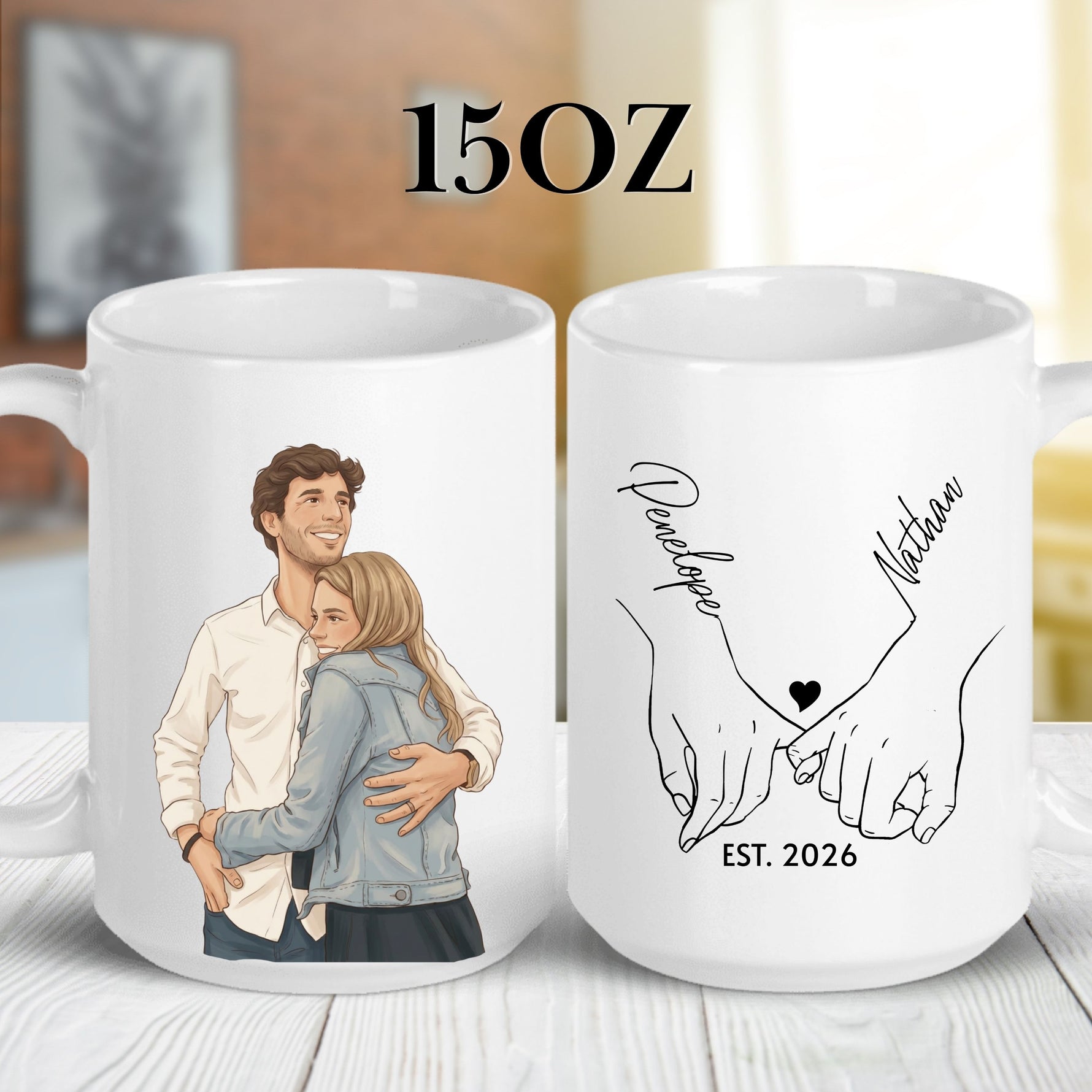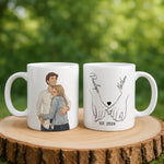 Celebrate your love story with a custom couple cartoon mug featuring your photo transformed into beautiful artwork! Perfect for anniversaries, engagements, weddings, or Valentine's Day.