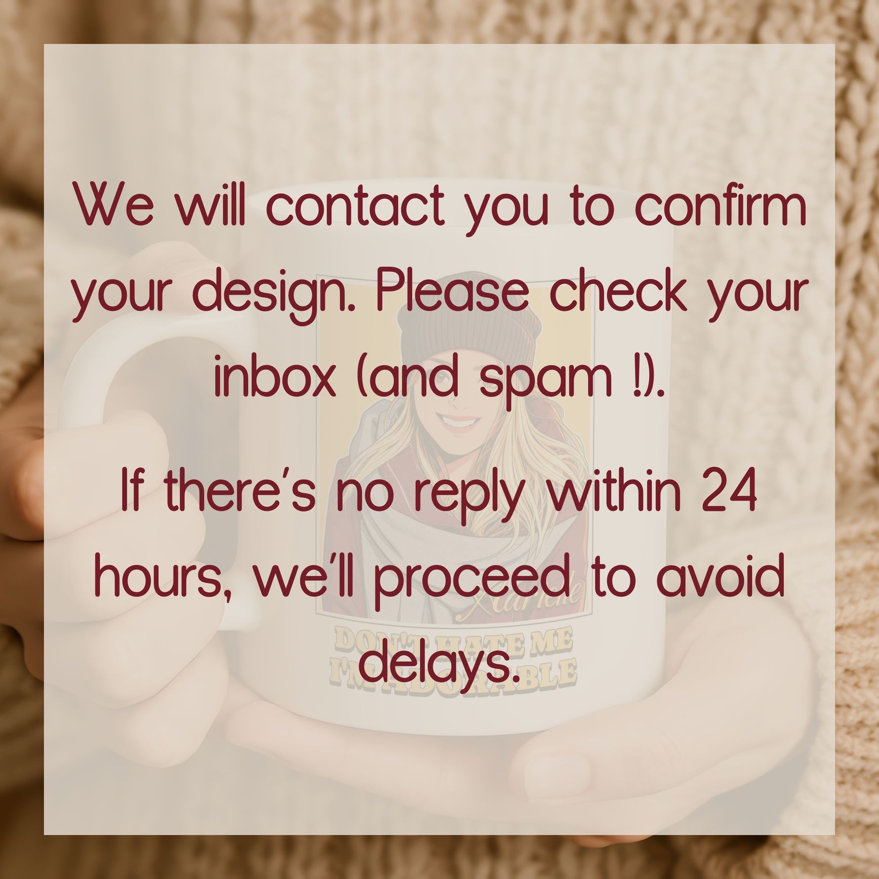 Kindly note that if we don’t receive a reply within 24 hours, we will proceed with production to avoid shipping delays.