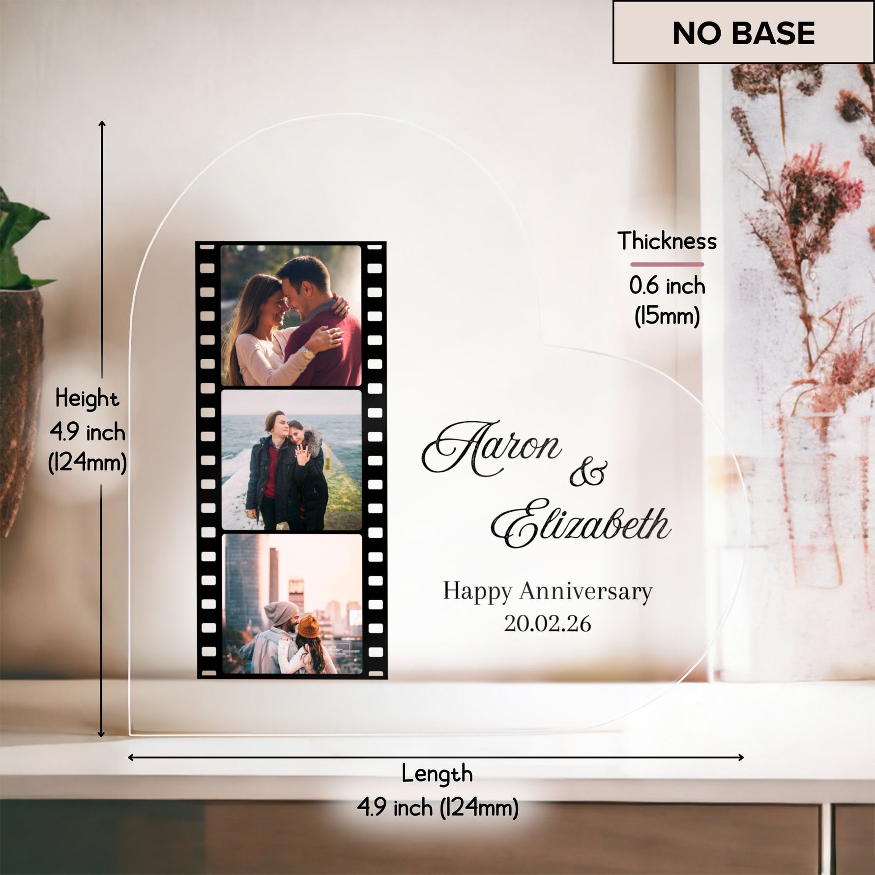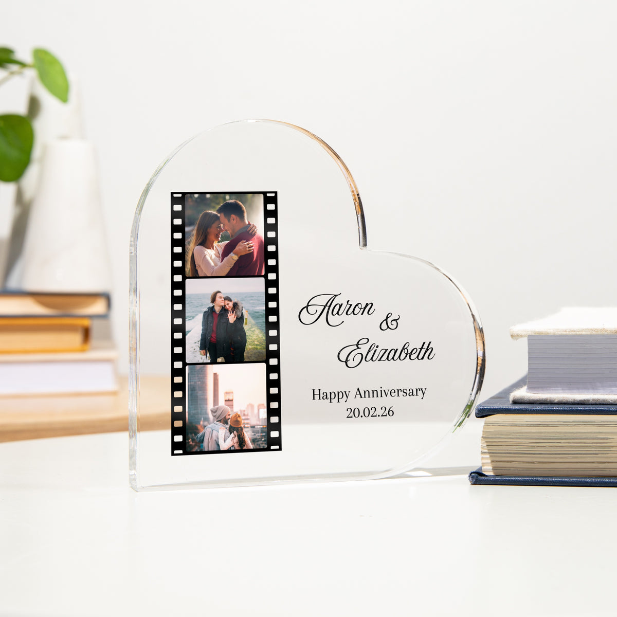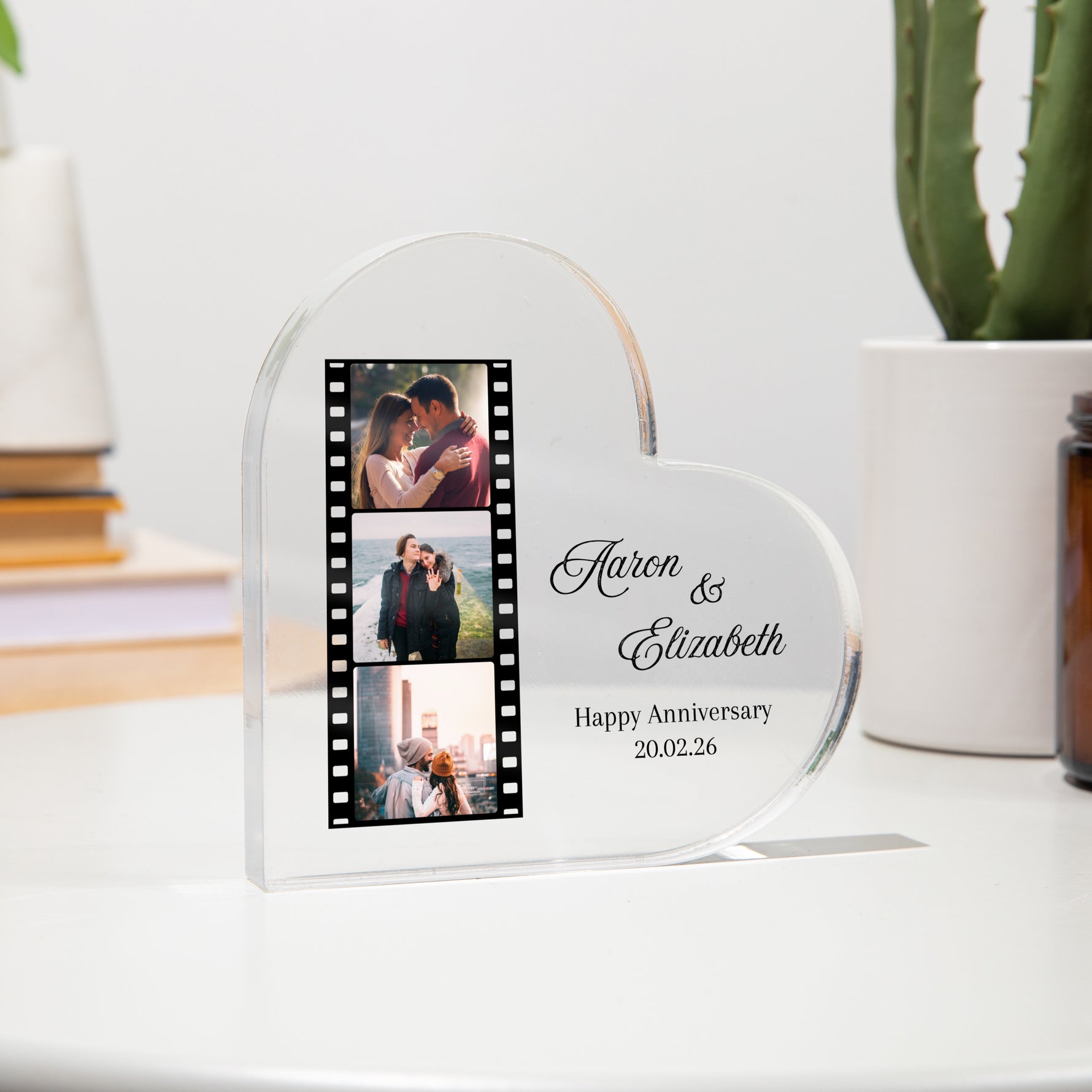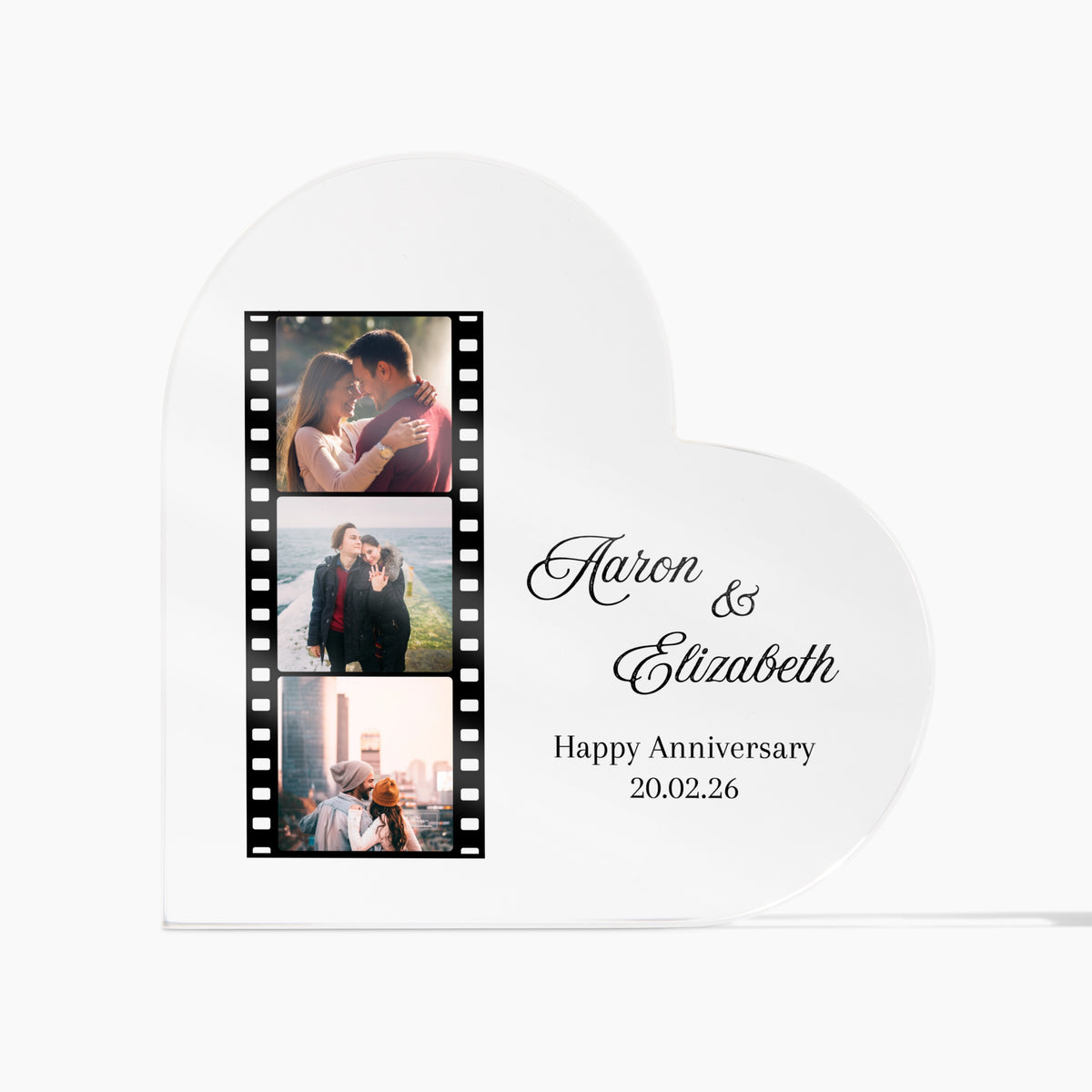 Personalized Heart Acrylic Photo Plaque – Film Strip Anniversary Keepsake