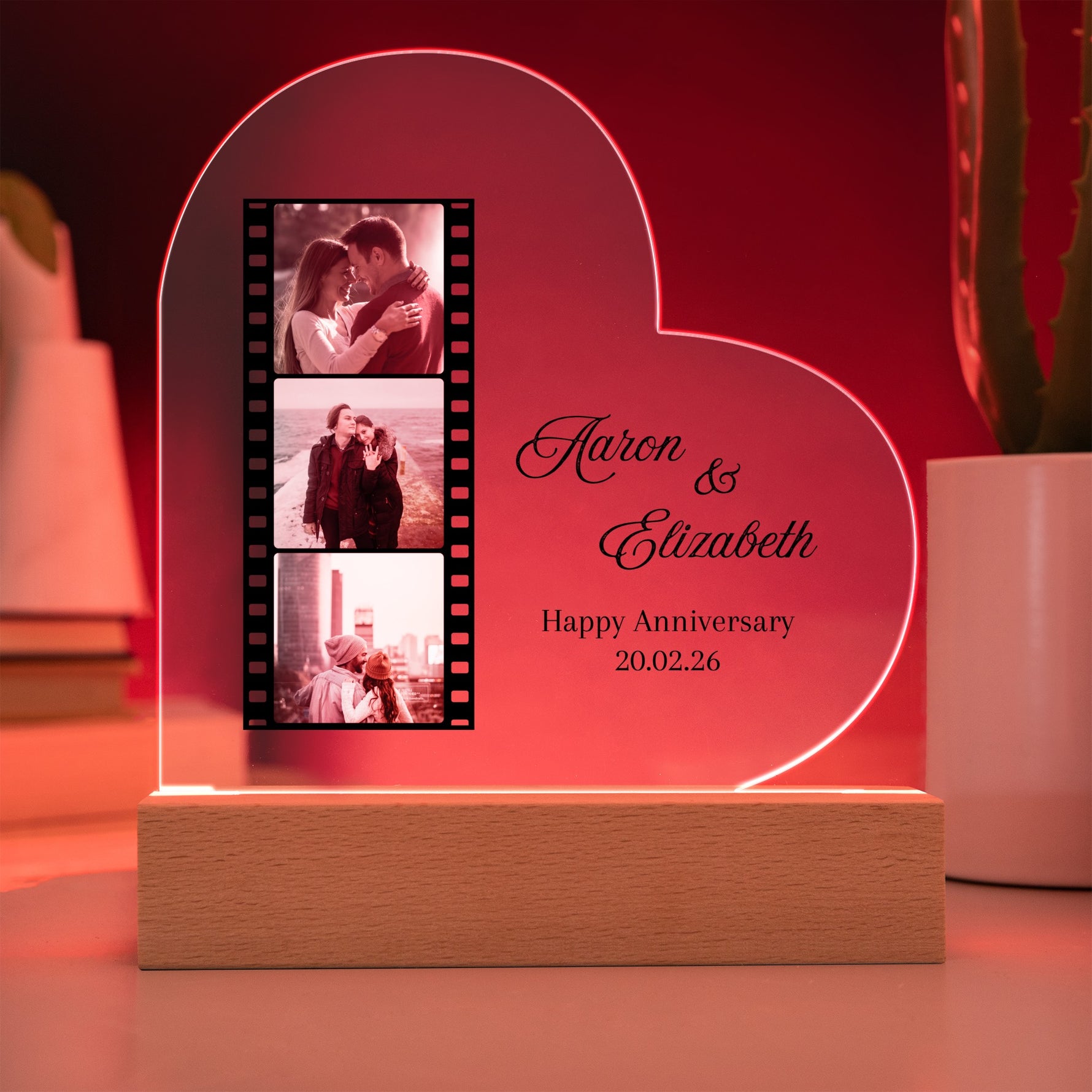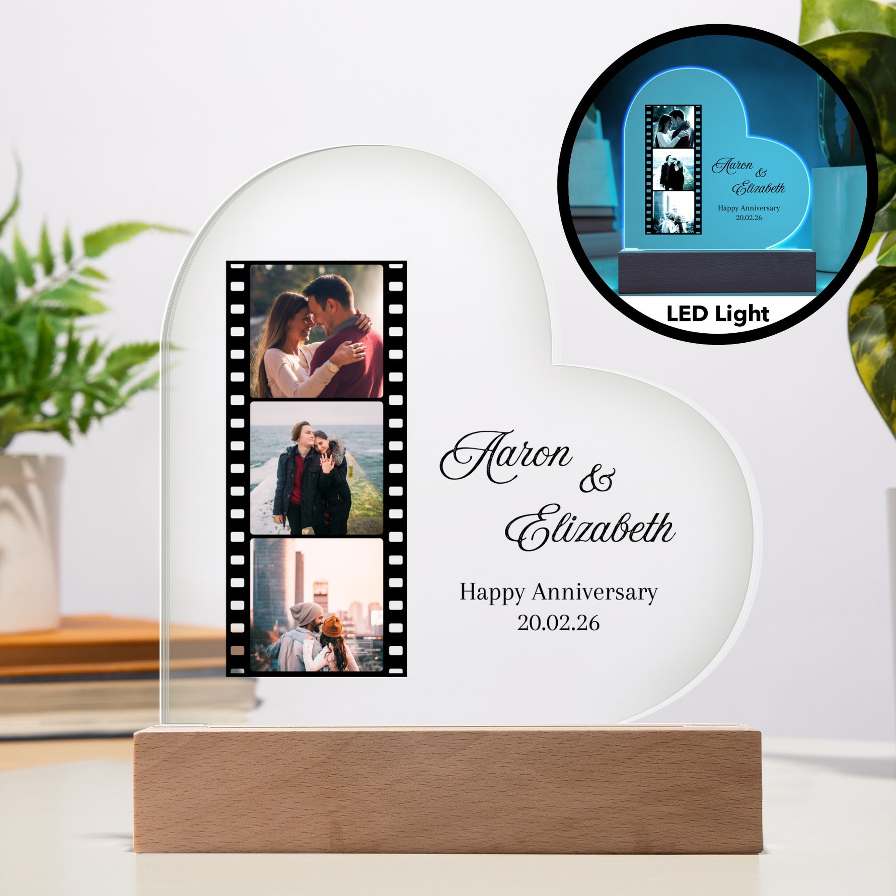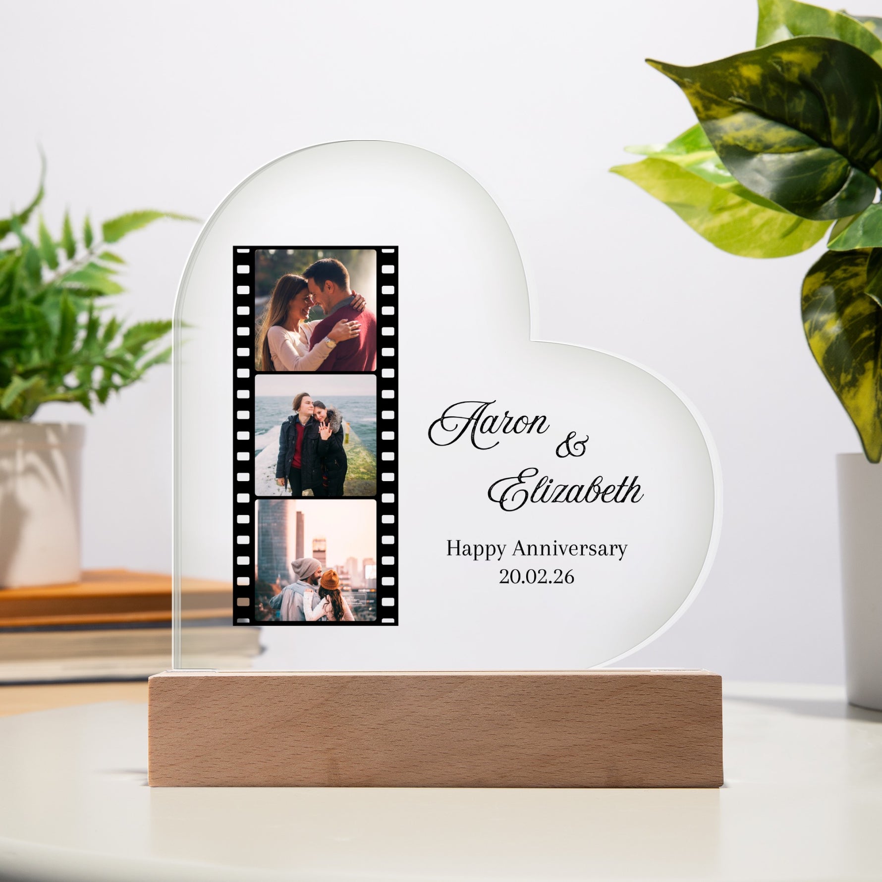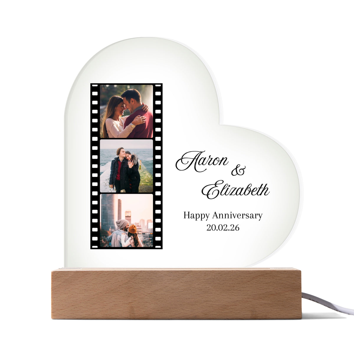 Personalized Heart Acrylic Photo Plaque – Film Strip Anniversary Keepsake