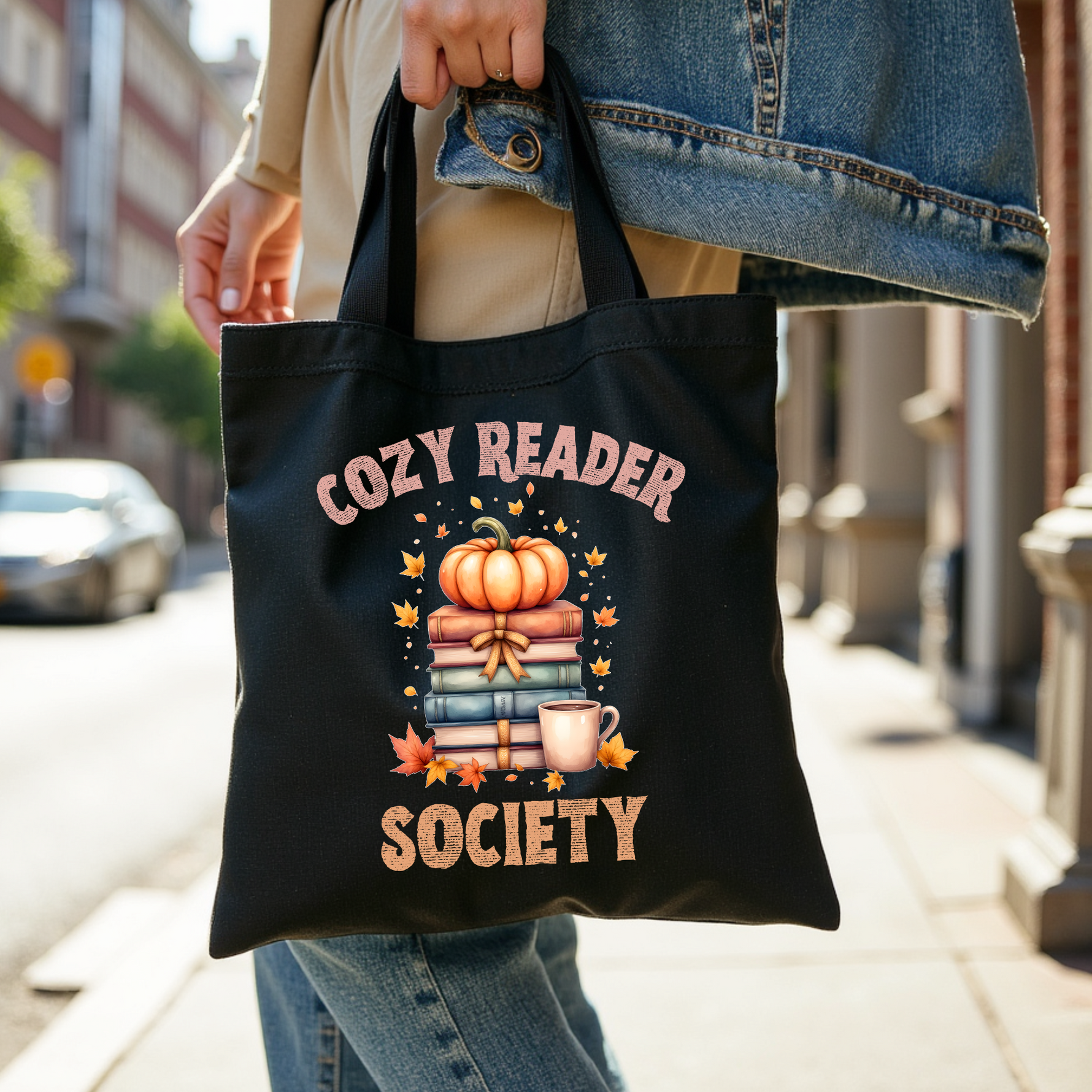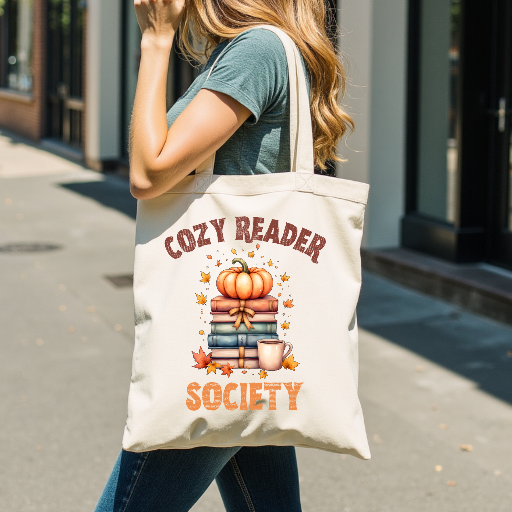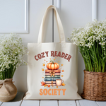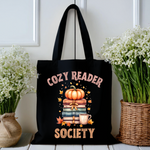 Cozy up with this pumpkin books tote bag from the cozy reader society collection. Perfect for carrying your favorite reads to your next book club meeting or cozy afternoon at the café. Ideal for book lovers and those who value a touch of literary charm in their day-to-day. Great for fall season, book lovers, and reading enthusiasts.